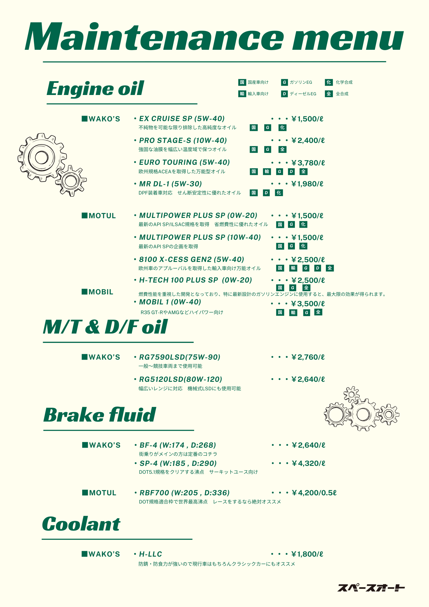 エンジンオイルのメーカーも3種類取り扱っております。